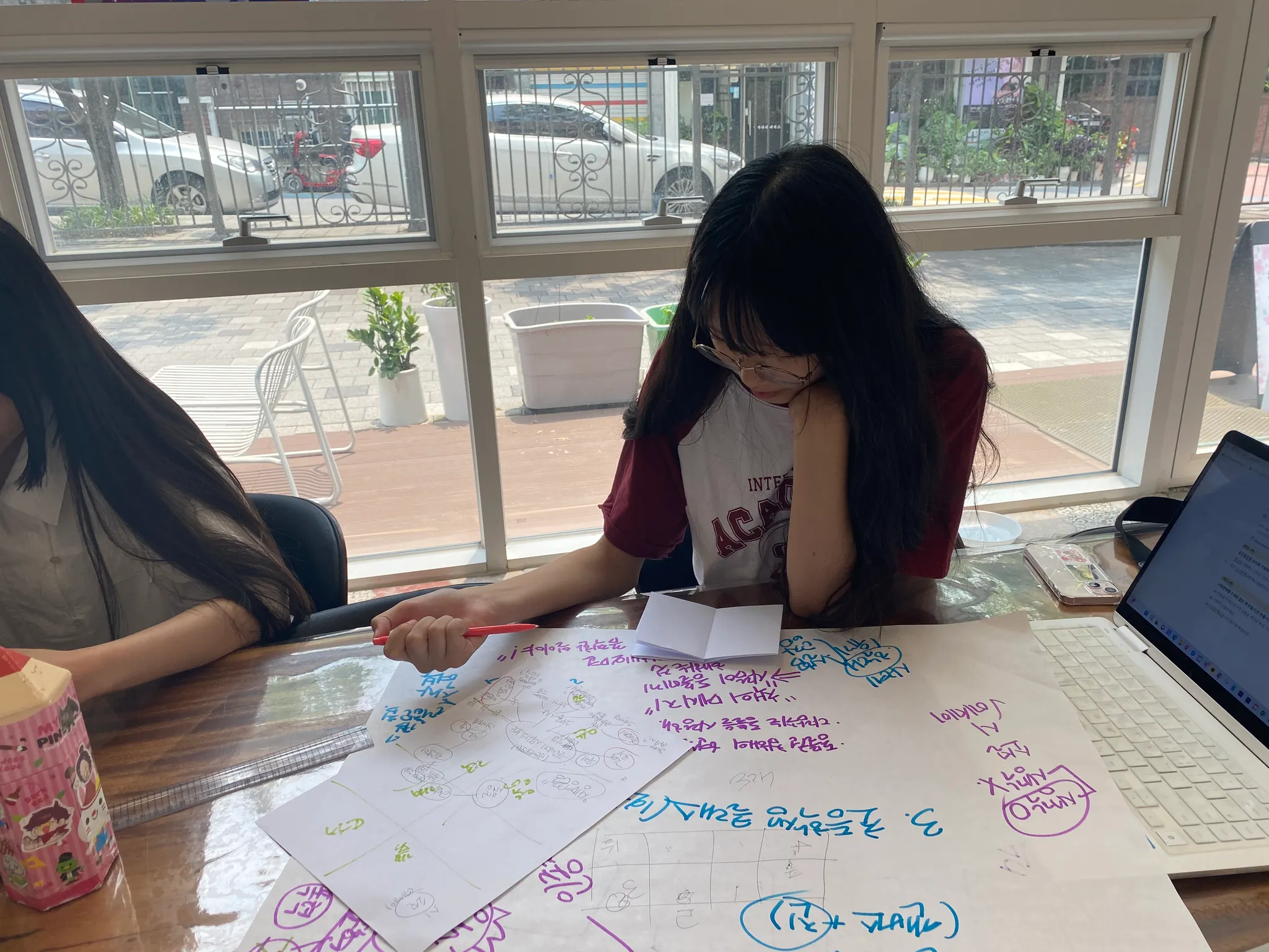 진을 만들거나 캔버스에 그림을 그릴 때 빈 종이와 물감만 쥐어주면 시작하기 어려워 함. 근데 이건 성인도 마찬가지. 냅다 “원하는 거 그려봐!”가 아니라, 전지에 브레인스토밍을 하면서 뇌 깨우고 주제를 구체화 해야 더 쉬움.