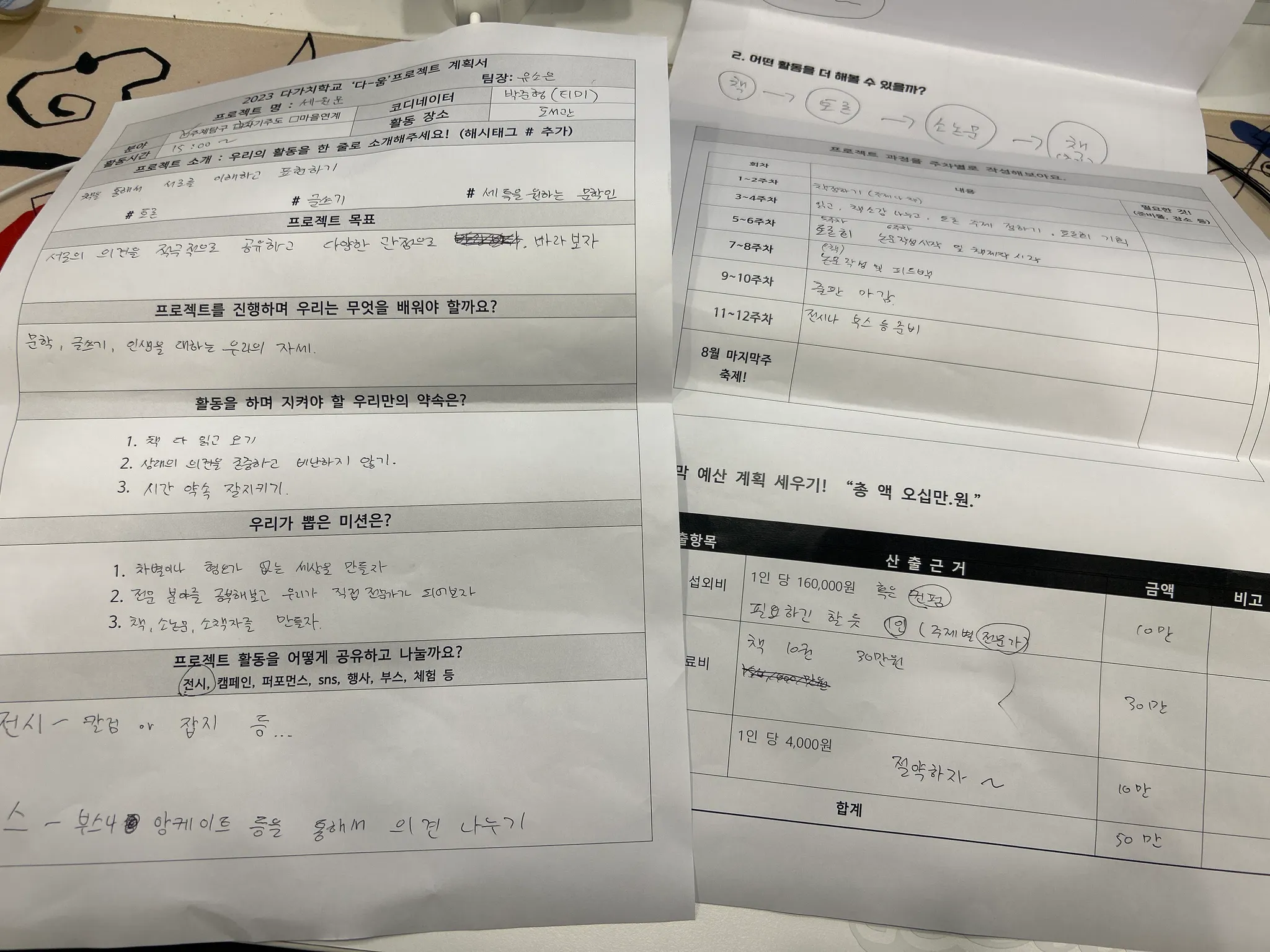 3~4주차 | 일고 소감 나누고 토론 주제 정하기, 토론회 기획 | |