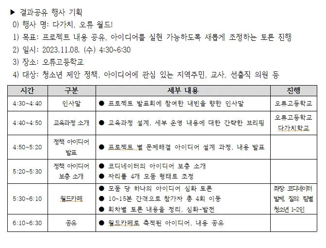 결과물을 제작하는 것보다 정책으로 이어지는 고민의 흐름을 정책 제안서(ppt), 발표 내용에 담는 것이 주요