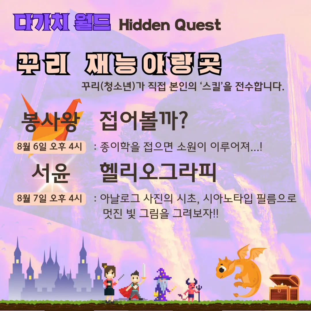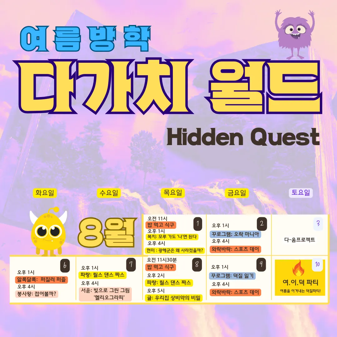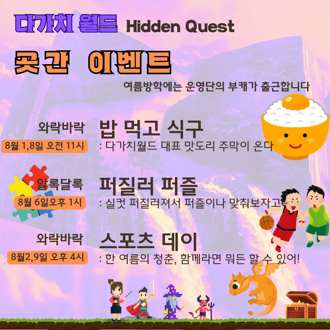 다가치월드에서 여름방학 맞이 특별 이벤트가 진행됩니다.