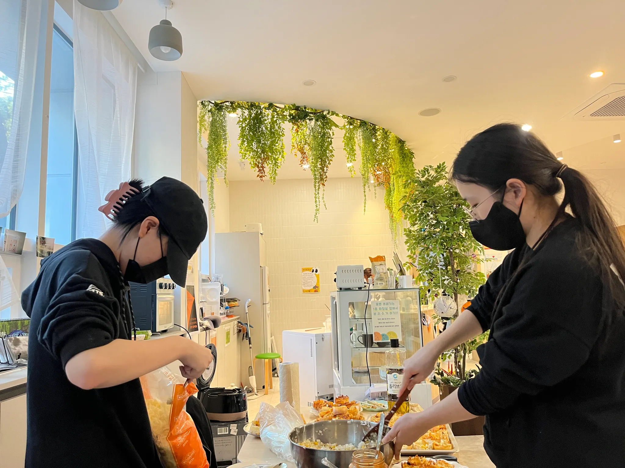 P.S 모짜렐라가 꽝꽝 얼어있어 밀대로 덩어리를 부수는 쑤