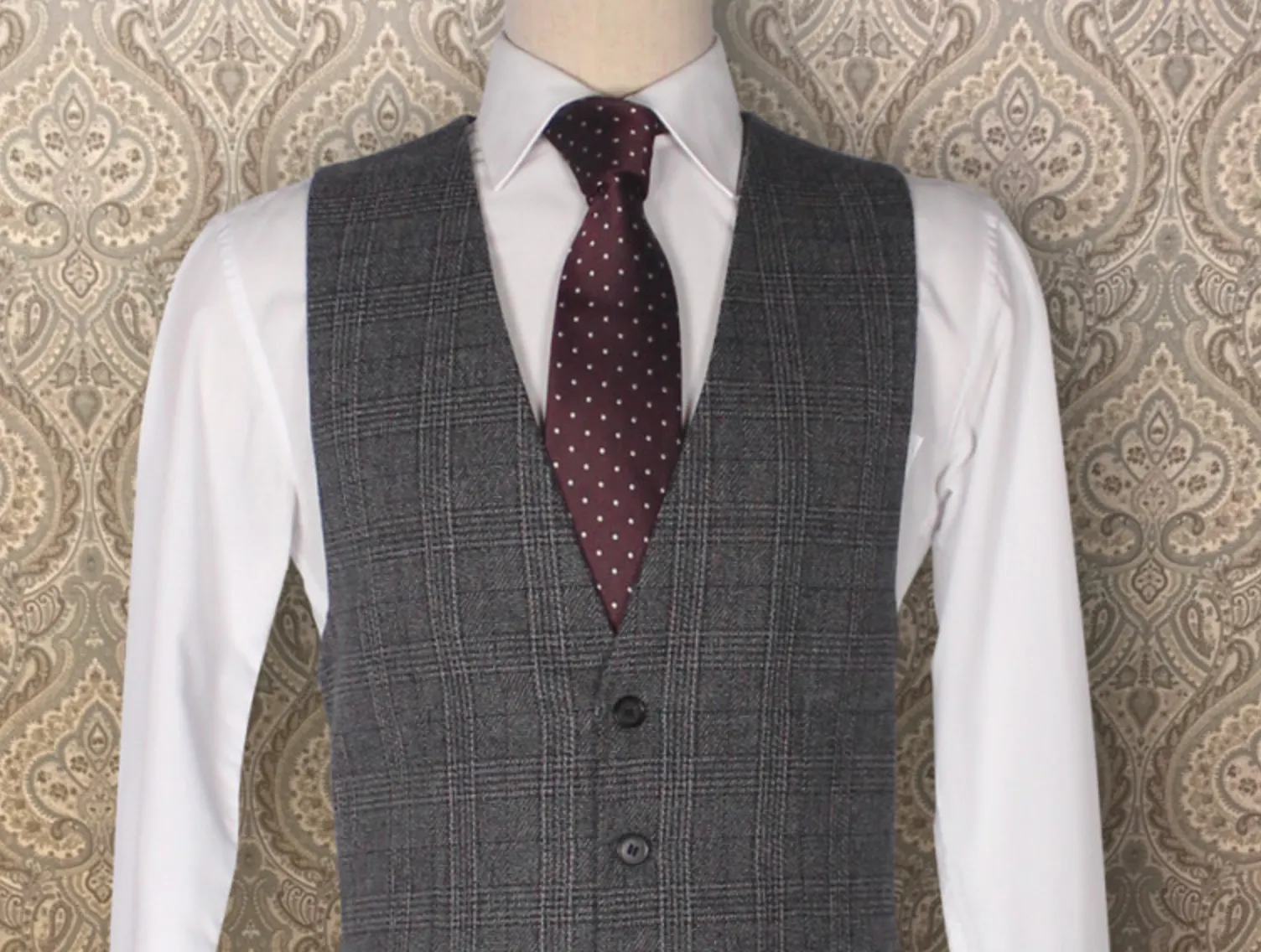그레이 슬림 체크-자켓L, 바지L, 조끼L, 셔츠100