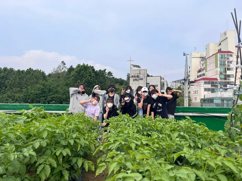 다가치 학교 옥상에는 작은 텃밭이 있어요. 상반기에는 감자를, 하반기에는 무를 심었습니다. 활동을 마치고 옥상에 올라가 잡초를 뽑아주고 물을 주었고, 무럭 무럭 자란 작물을 수확해서 요리를 해먹었답니다.무럭무럭 자리고 있는 감자밭과 요리조리! 어떤 요리가 탄생할지 무척 기대되었어요.
