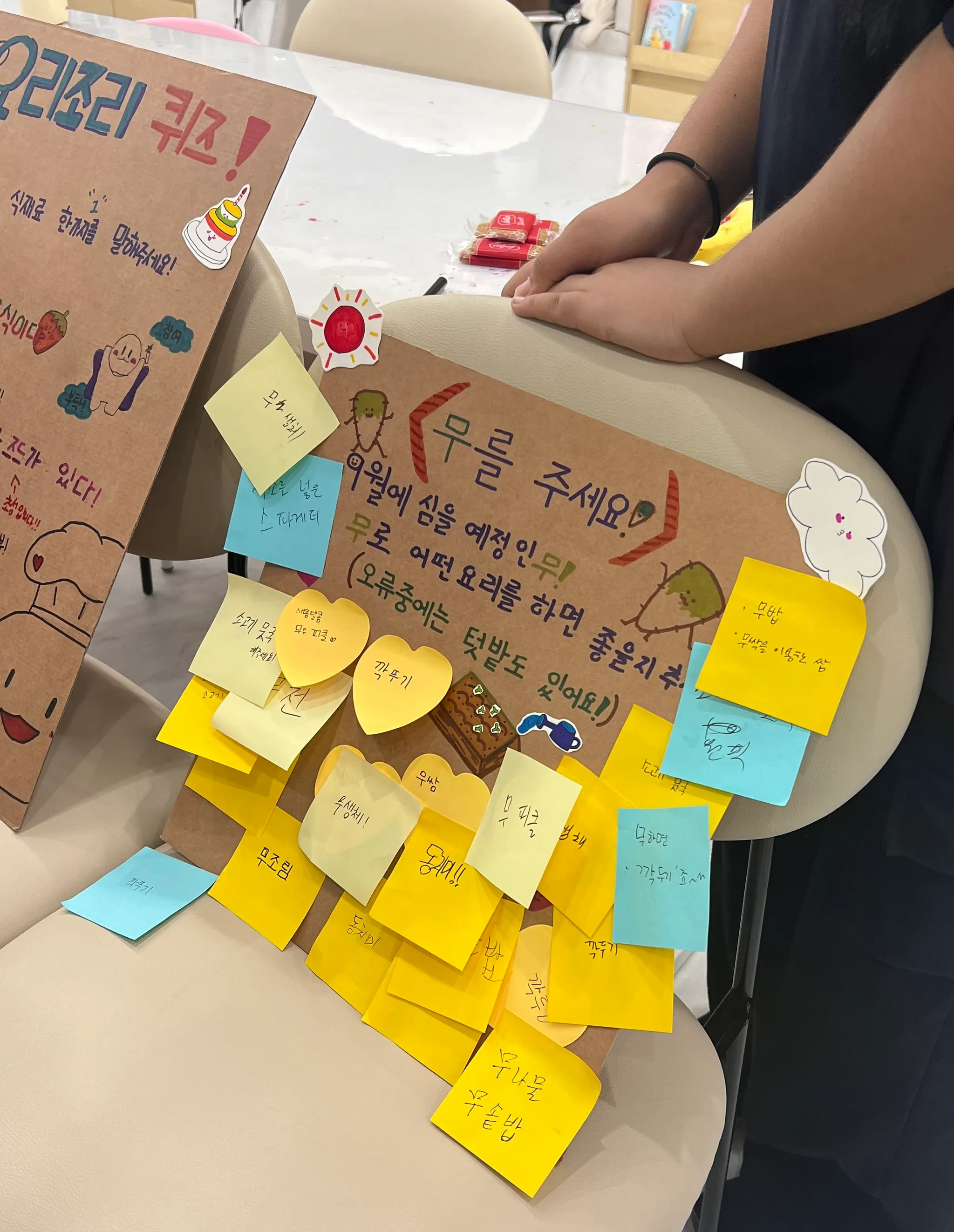 부스를 마무리하고 요리조리의 활동을 되돌아 보았어요. 즐거웠던 점. 인상 깊었던 활동, 아쉬웠던 활동 등등..