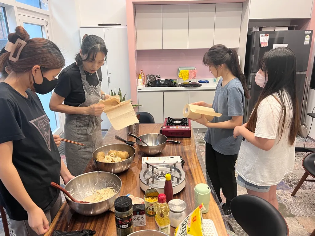 꾸리들의 곳간 같은 다온카페. 다온카페에서 컵라면과 삼각 김밥을 자주 먹는 꾸리들을 보여 새로운 활동을 제안하게 되었어요. “건강한 간식을 다온 카페에 방문한 꾸리들과 같이 만들어 보자!” 그리하여 비건 참치를 이용한 오니기리를 만들고 베이킹에 도전해서 수플레 케이크를 만들었어요. 새로운 꾸리들과 함께해서 즐거움도 두 배였어요~!
