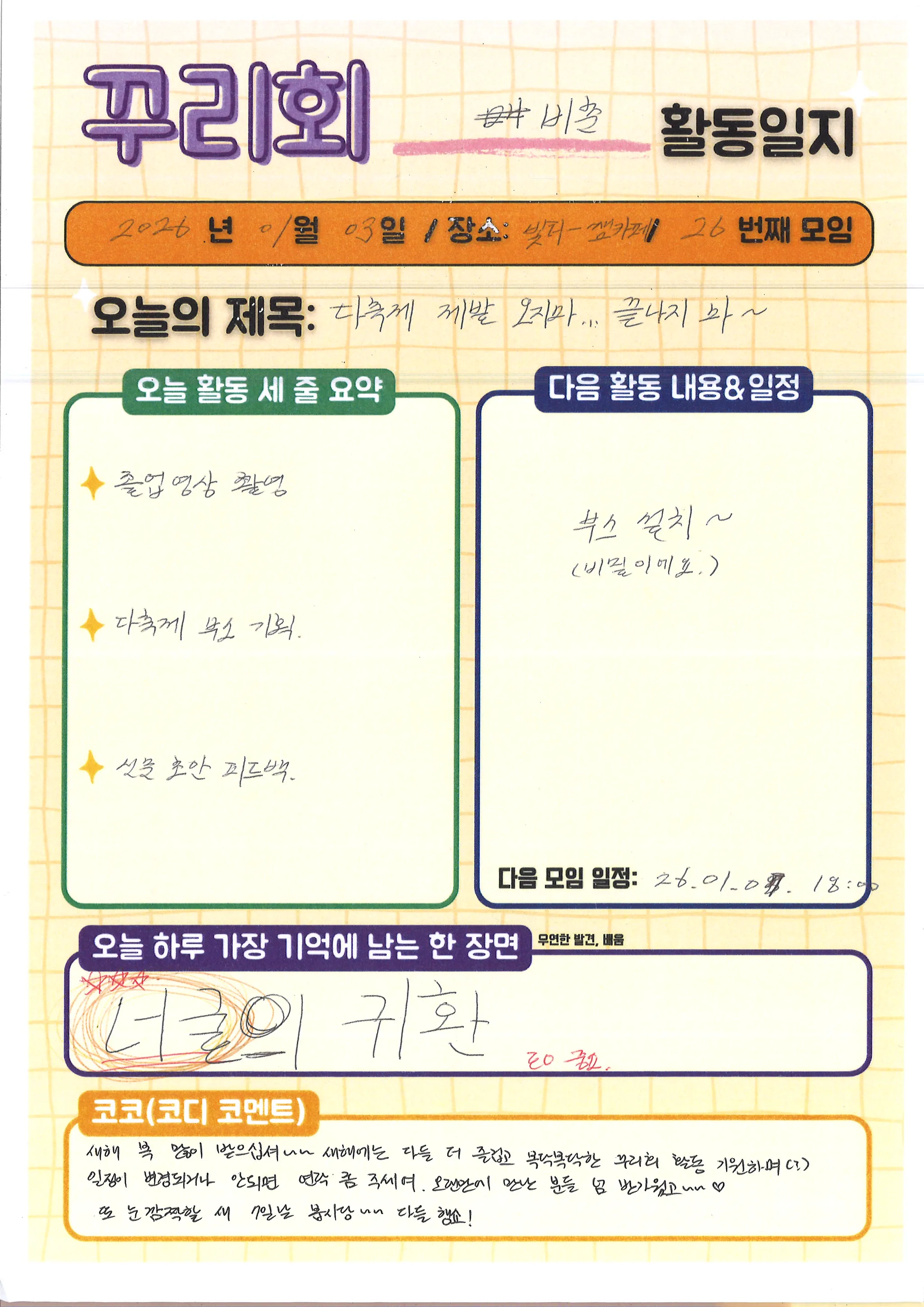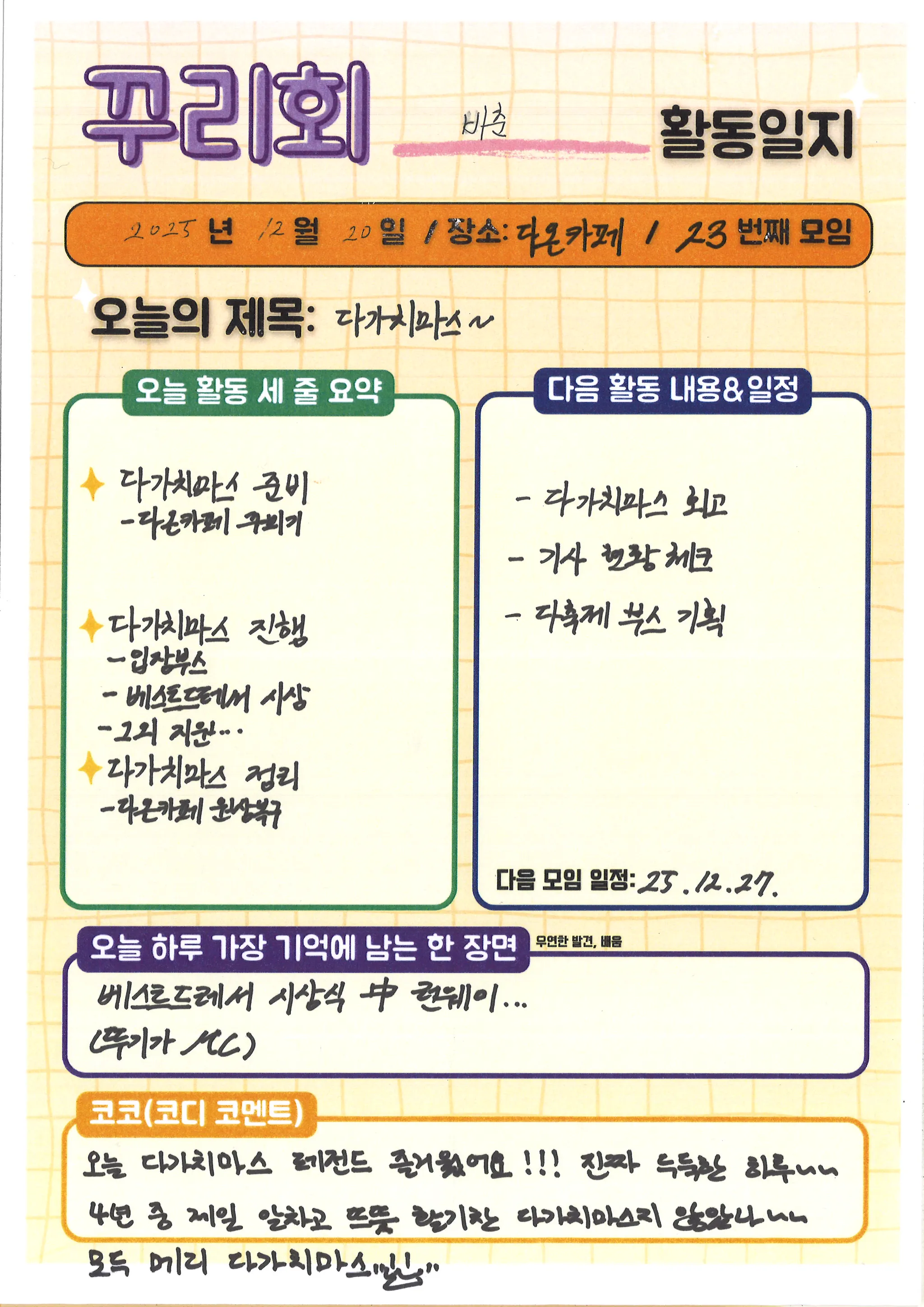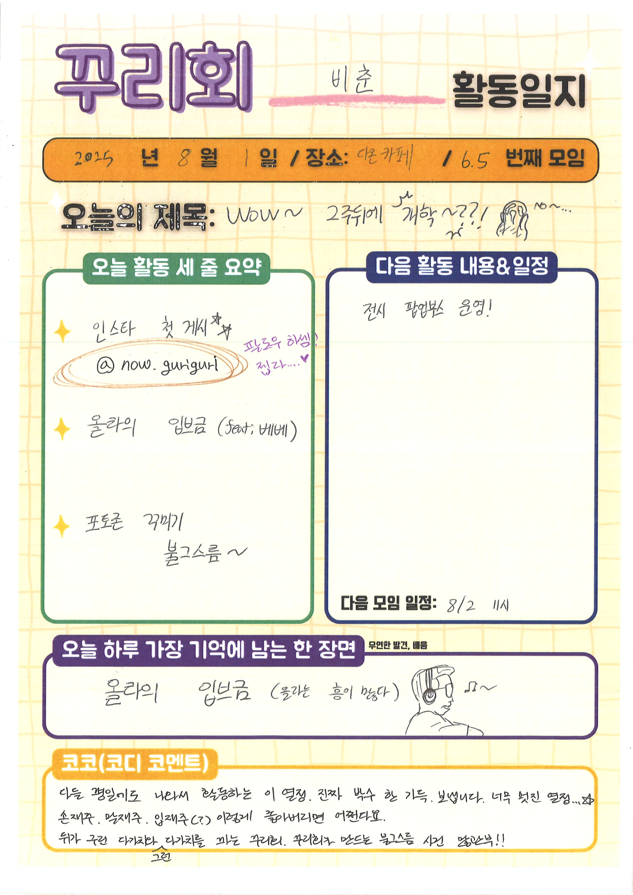 꾸리회 활동과 다가치의 일상을 기록하자(날것의 다가치ㅋㅋㅋㅋ)