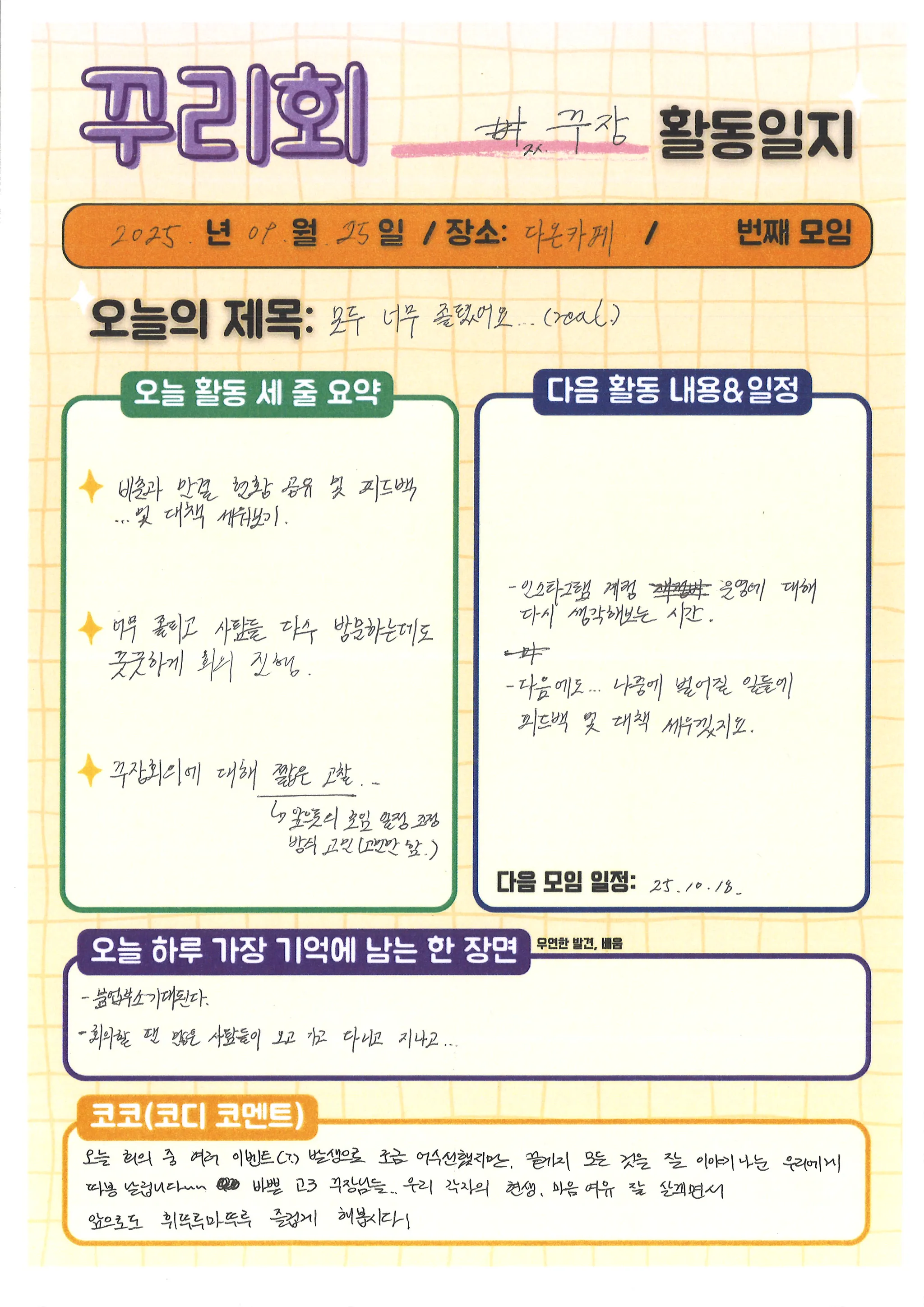 [25.9.25] 꾸장단 5회차_꾸리회는 바쁘다. 그리고 모두 너무 졸렸어요…
