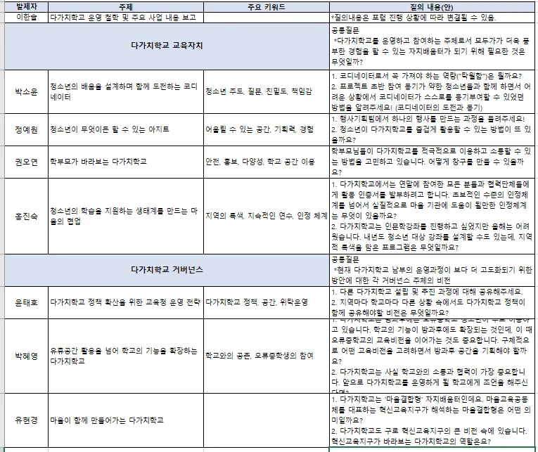 16:30~17:10 | 2부 메인요리 | [메인 요리] 다가치학교 운영 8주체 토론