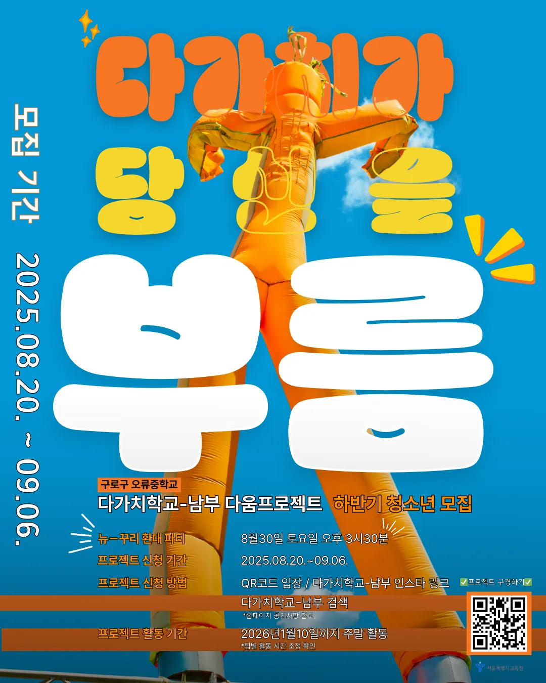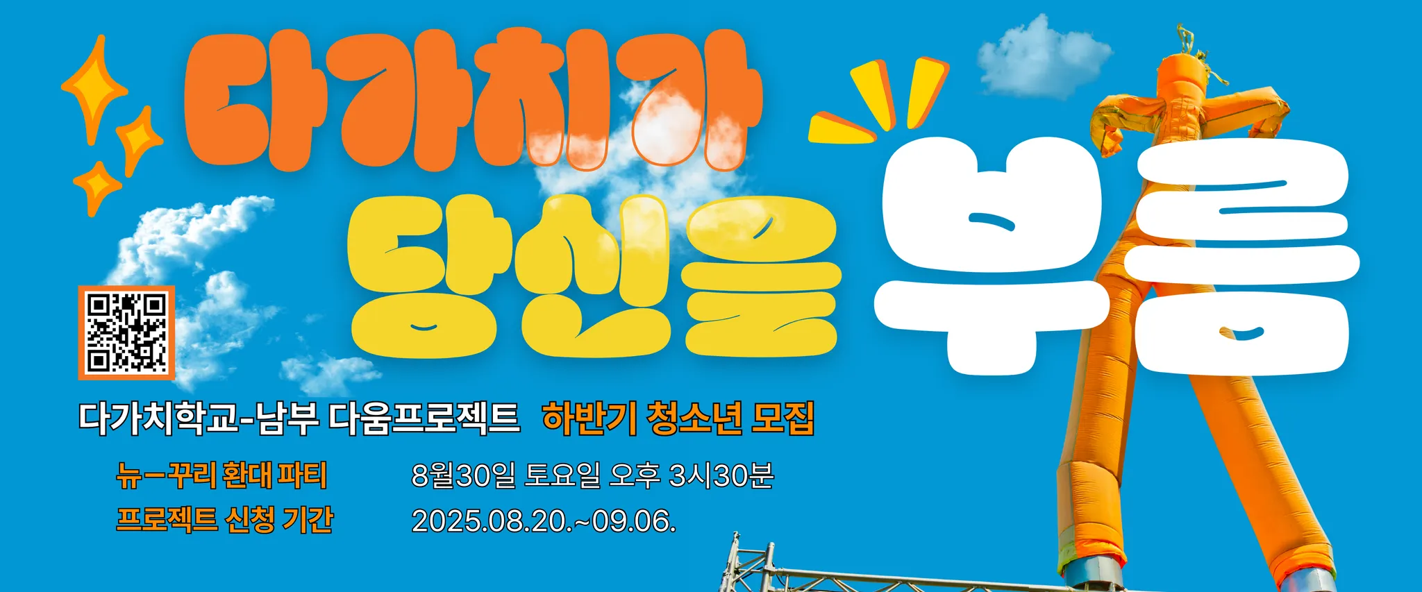 활동 기간: 2025.08.30.(토) 오후 3시30분 다가치 대-박람회 ~2026.01.10.(토) 다축제 주말 활동
