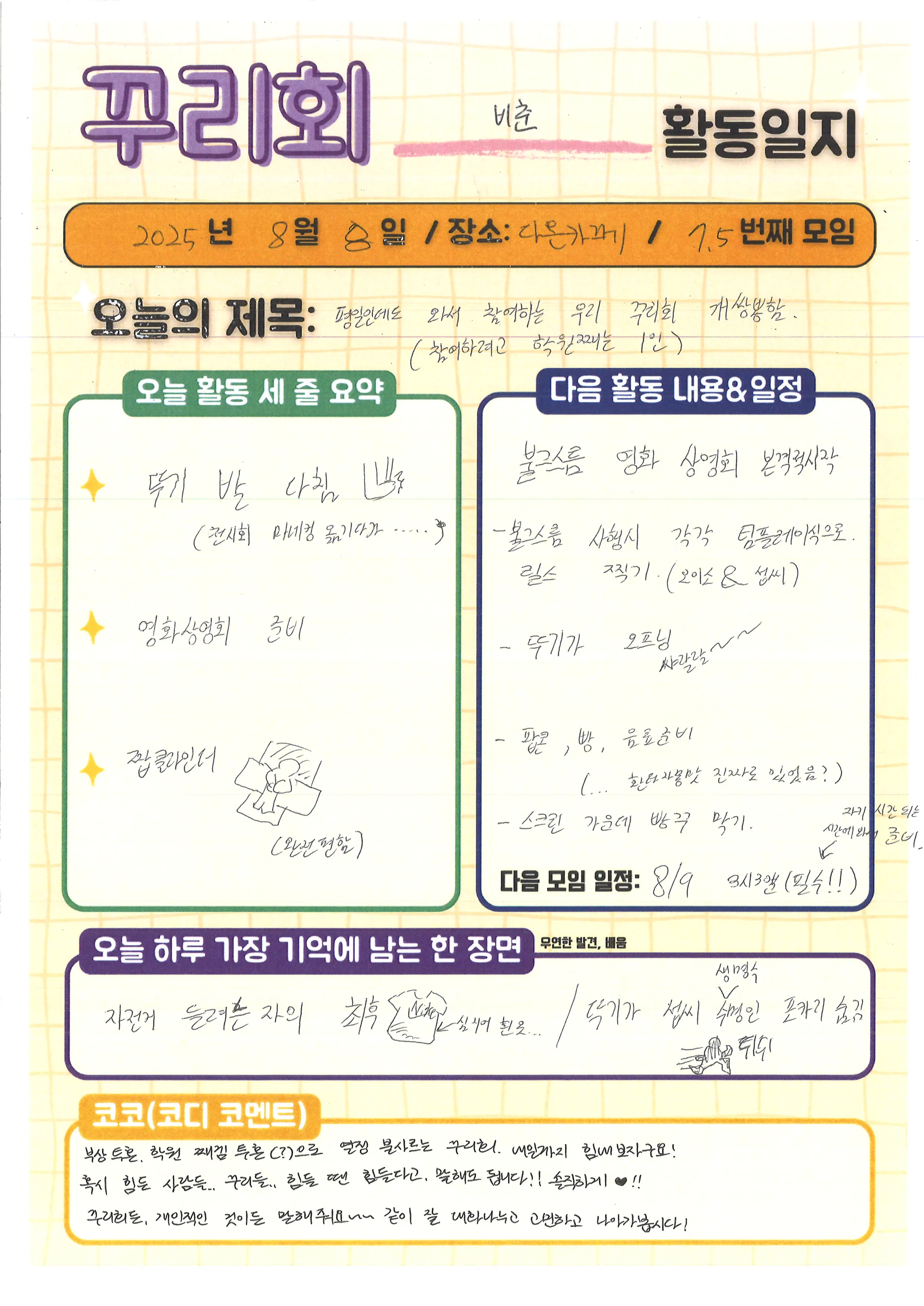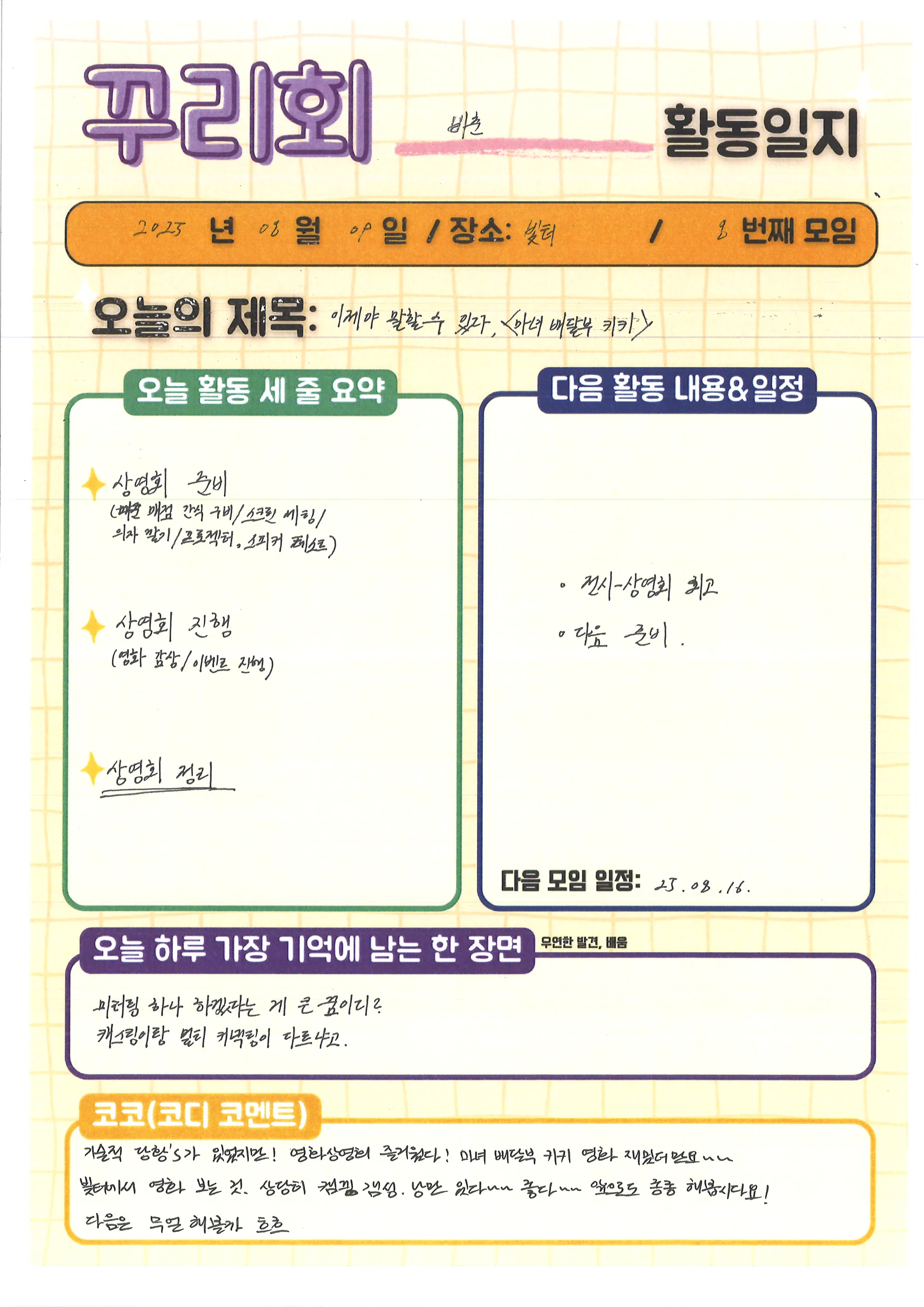 애정과 열정으로 평일에도 모여서 영화부스를 꾸미고 상영회를 준비하는 꾸리회