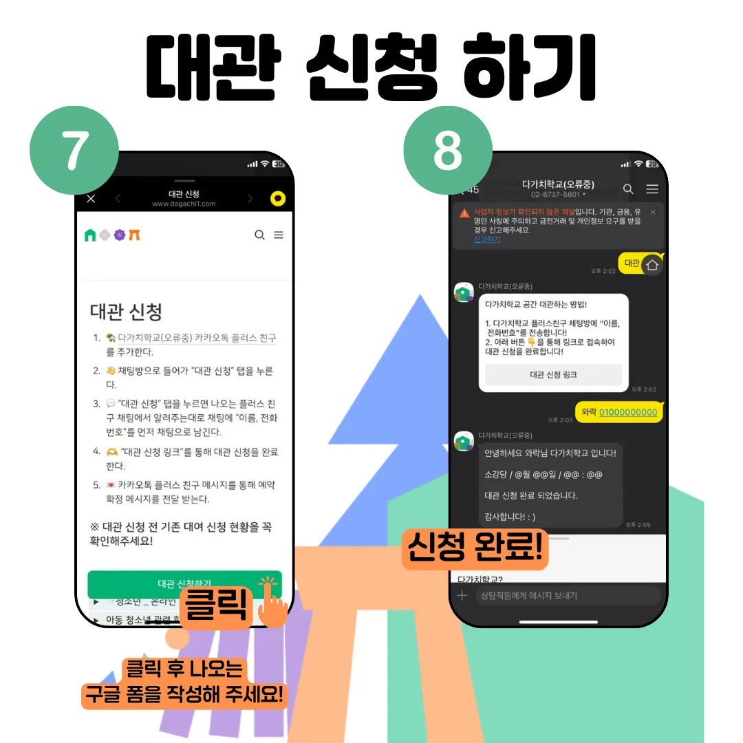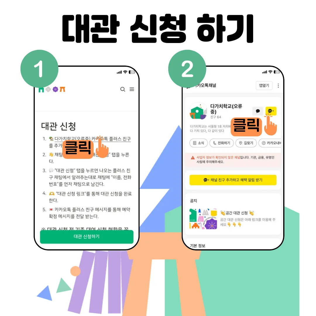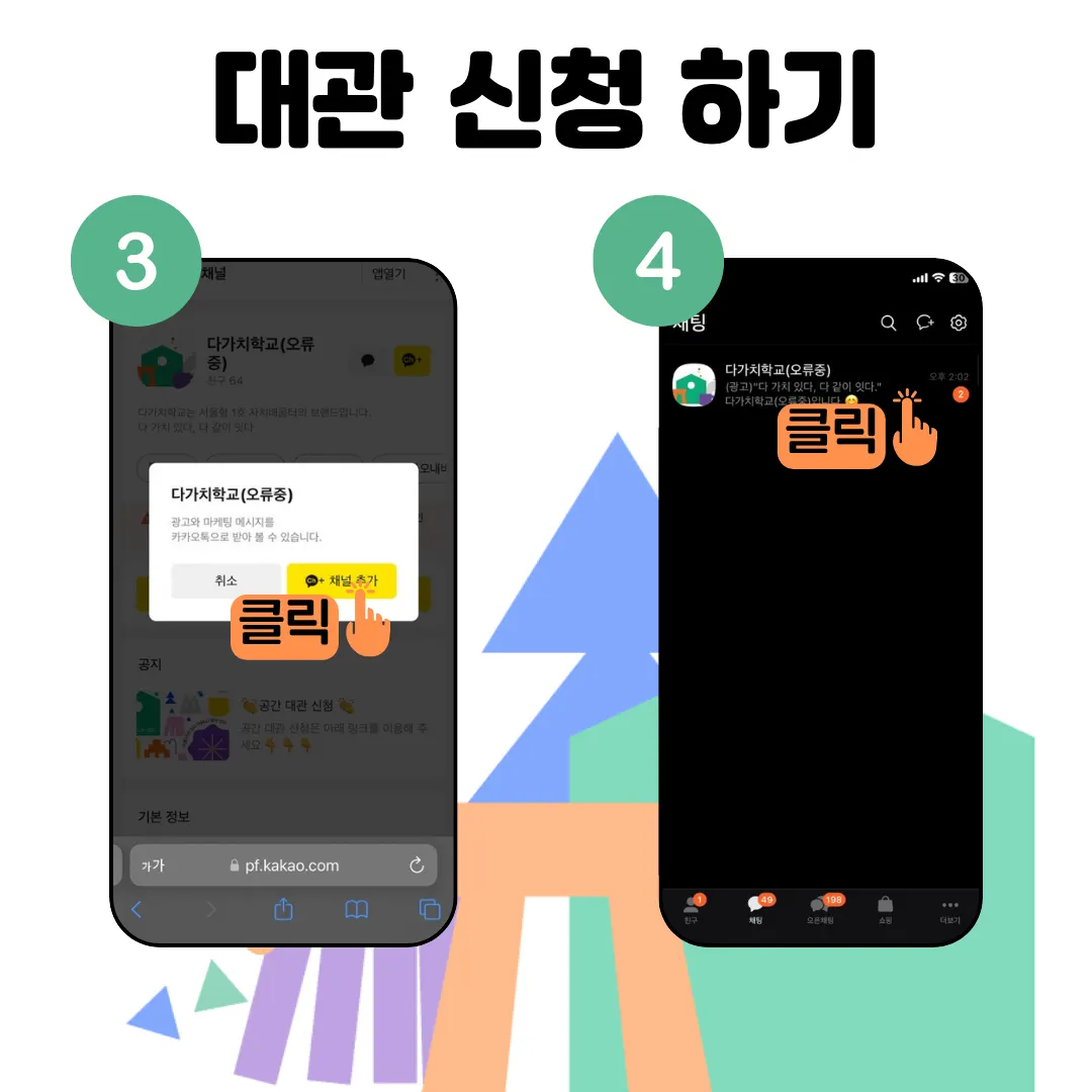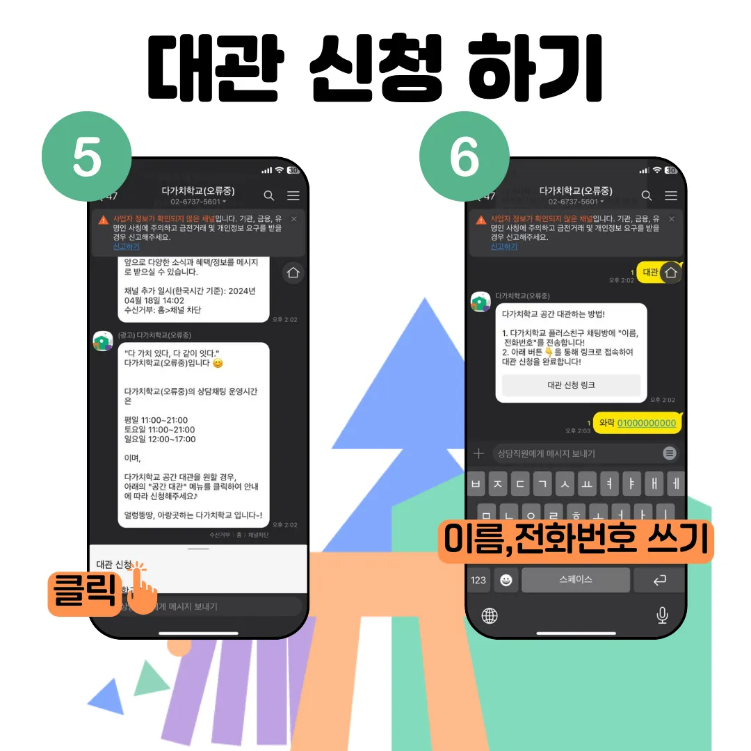 λ€κ°μΉνκ΅-λ¨λΆ μΉ΄μΉ΄μ€ν‘ νλ¬μ€ μΉκ΅¬ μ±λλ‘ μ΄μ©μ μ 보(μ΄λ¦, μ νλ²νΈ)λ₯Ό 보λ΄μ§ μλ κ²½μ° μμ½μ΄ νμ λμ§ μμ μ μμ΄μ!
