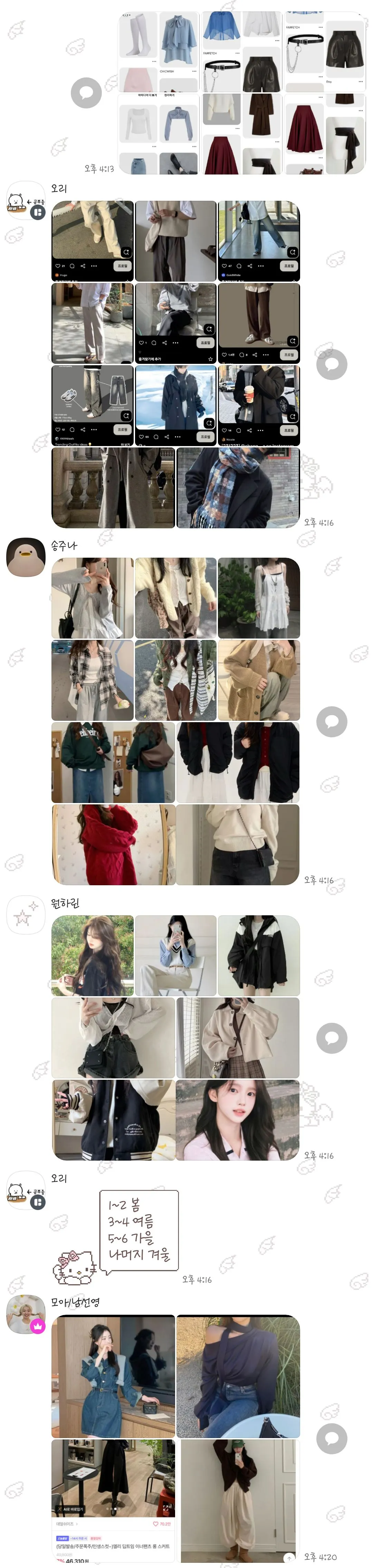 마법소녀 변신! 서로 스타일링 해주기, 우리의 지갑과 패션 두 마리 토끼 잡기, 나만의 색 찾기(퍼스널 컬러, 추구미 패션 탐구), 신체 해방(몸에 맞지 않는 타입 시도해보기)