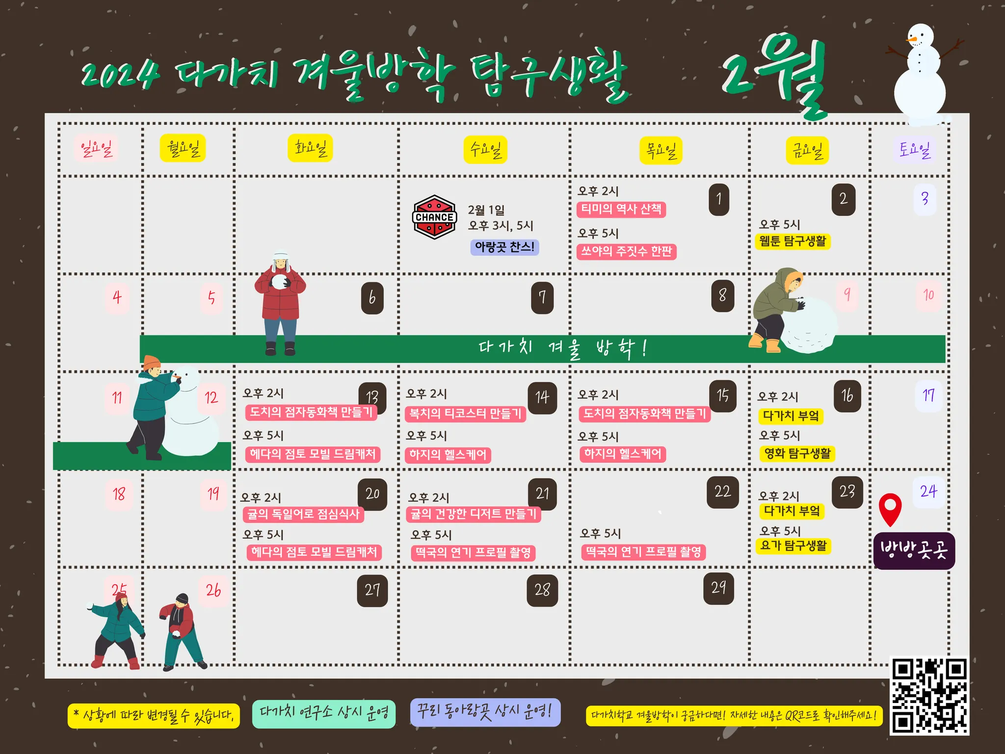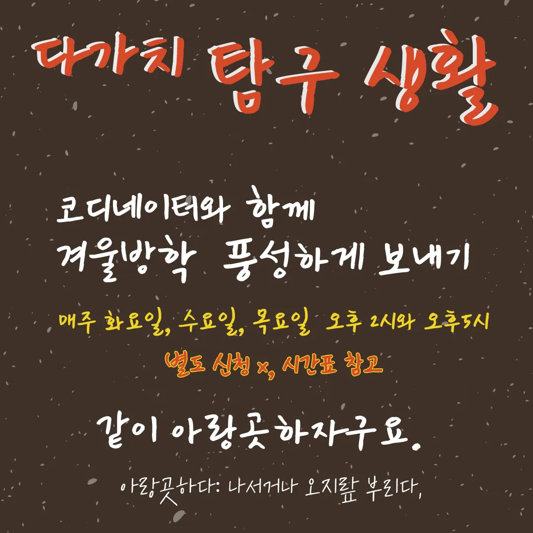 활동 기간 l 2024.1월~2월 중 화/목요일 _ 2월 6일(화)~2월 8일(목) 방학