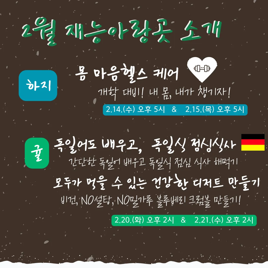 강하영(하지) | 헬스케어 | 방학맞이 몸 마음 헬스케어 | 2월14일(수), 15일(목)