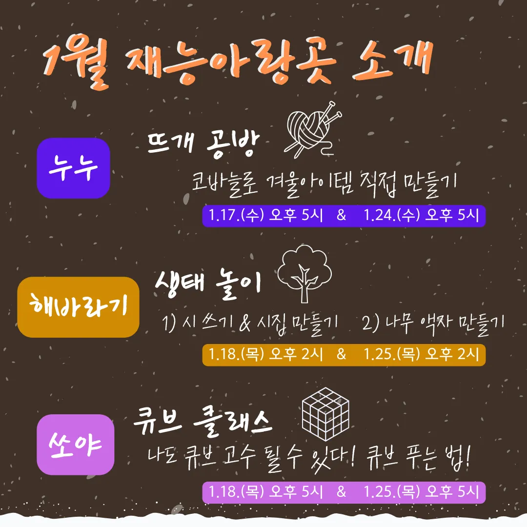 회차별 하나의 겨울 아이템을 만들어 갈 수 있음. | 1월17일, 24일 (수)