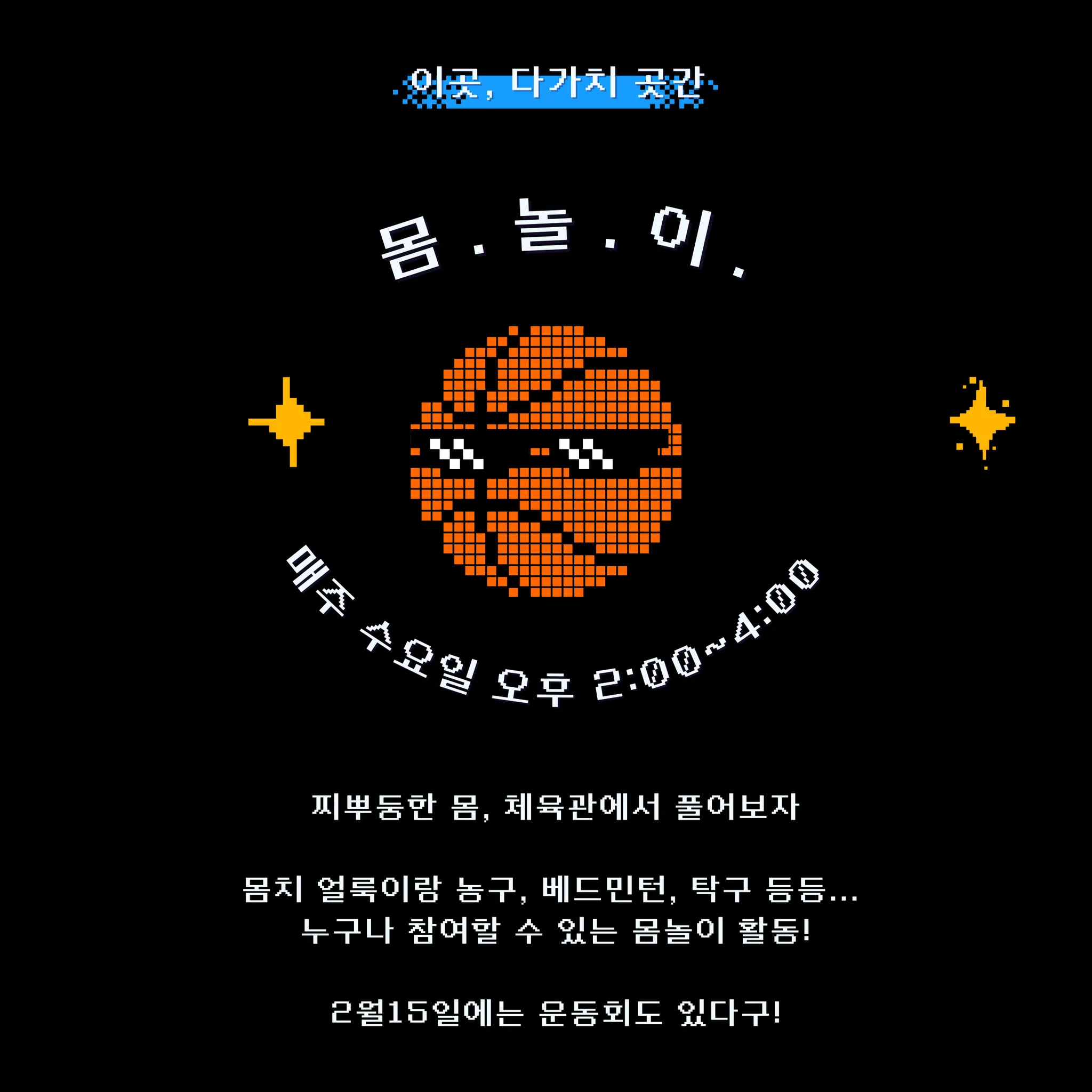 기간 : 1.11 ~ 2.15 6주간 매주 수요일 14:00 - 16:00 / 2.15 다가치 운동회