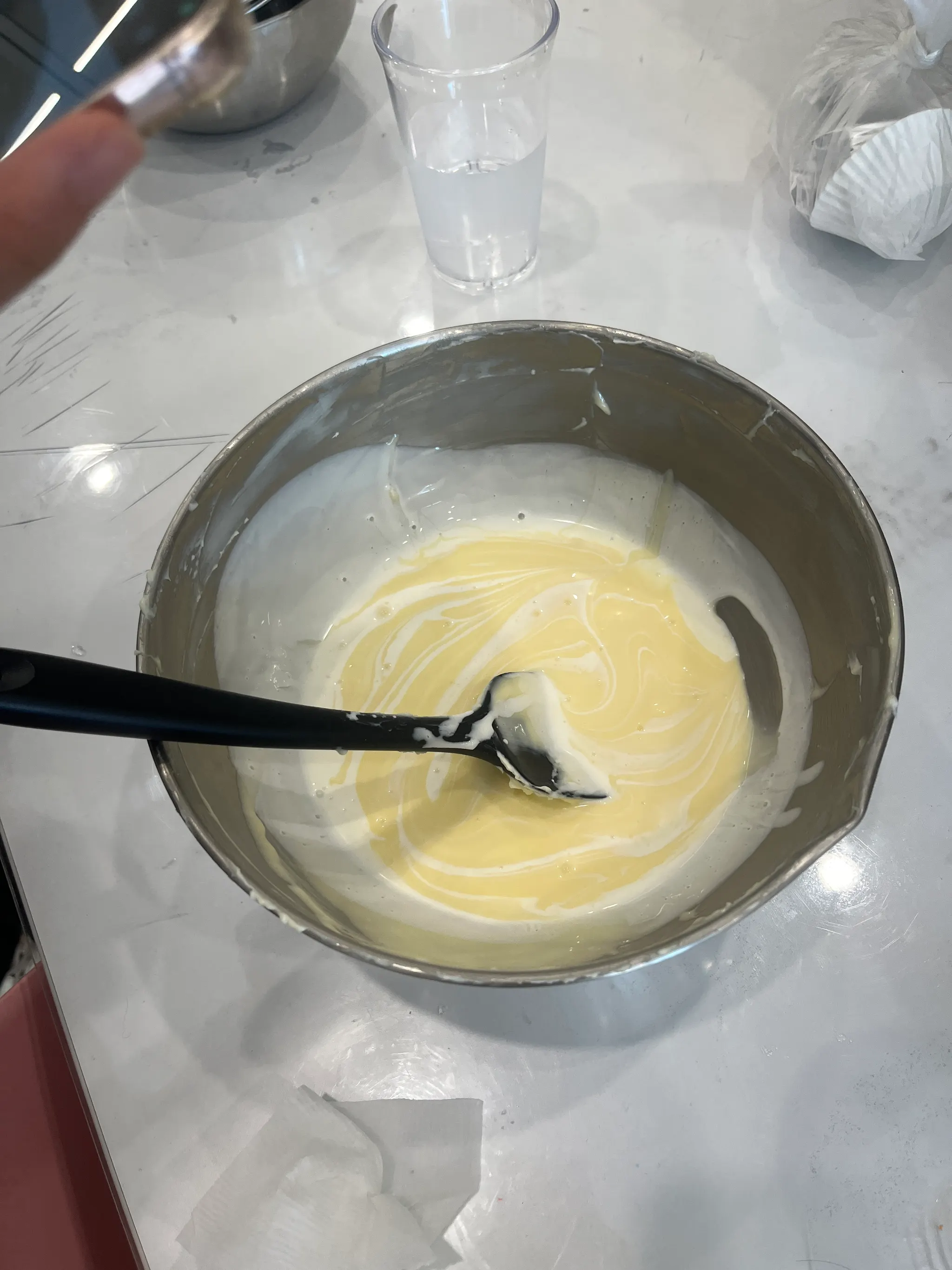 생크림 110g을 넣고 섞는다 (동물성 휘핑크림으로도 대체가 가능하다)