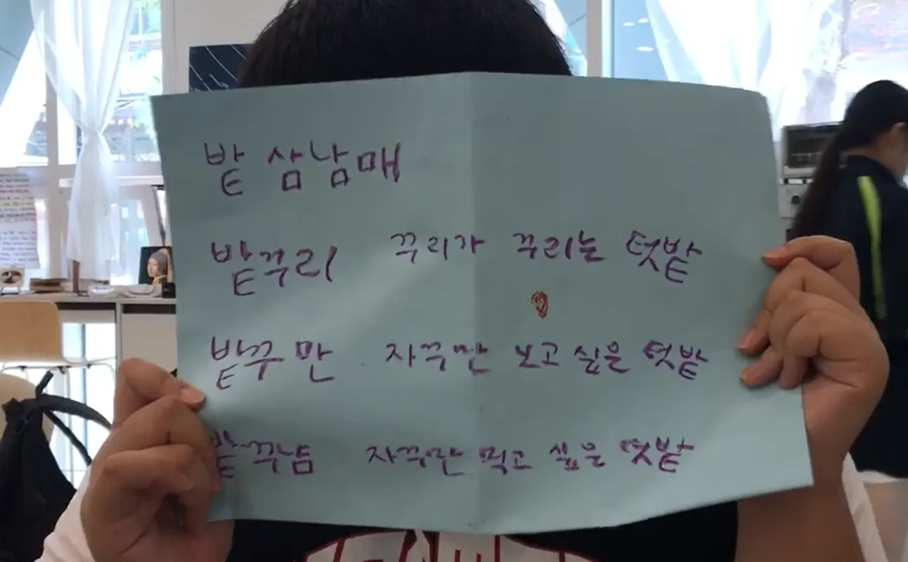나는 가서 텃밭 이름을 만드는 중대한 일을 했다. 식량창고, 우식여자(우리의 식량이 여기에 자란다_수박이 지음), 다가치 텃밭 등등 생각하가다 안돼서 앙꼬를 불렀다. 앙꼬와 티키타카 하며 이상한 말들을 툭툭 내뱉었다. 앞에서 ‘무엇이든~’ 꾸리들이 우릴 이상하게 보았다. 그리고 몇몇 제안한 이름에는 절래절래하기도 했다. 아주 토끼같이 귀엽고 순한 친구인 소원도 고개를 저었다.. 텃밭과 관련된 단어를 모두 적었다. 작물, 가꾸다, 씨앗, 흙, 키우다, 자라다- 그러다 앙꼬가 ‘작꾸만’ 어떠냐고 했다. 여기에 자꾸만 보고 싶은 텃밭+자꾸만 들여다봐야 하는 텃밭 이라는 의미를 끼워 맞췄다. 난 좋았지만, 꾸리들의 오케이 싸인이 나지 않아 더 머리를 굴렸다. ‘작꾸만’ 에 ‘작’을 ‘밭’으로 바꾸기로 했다. 그리하야 밭 삼남매가 탄생했다.
