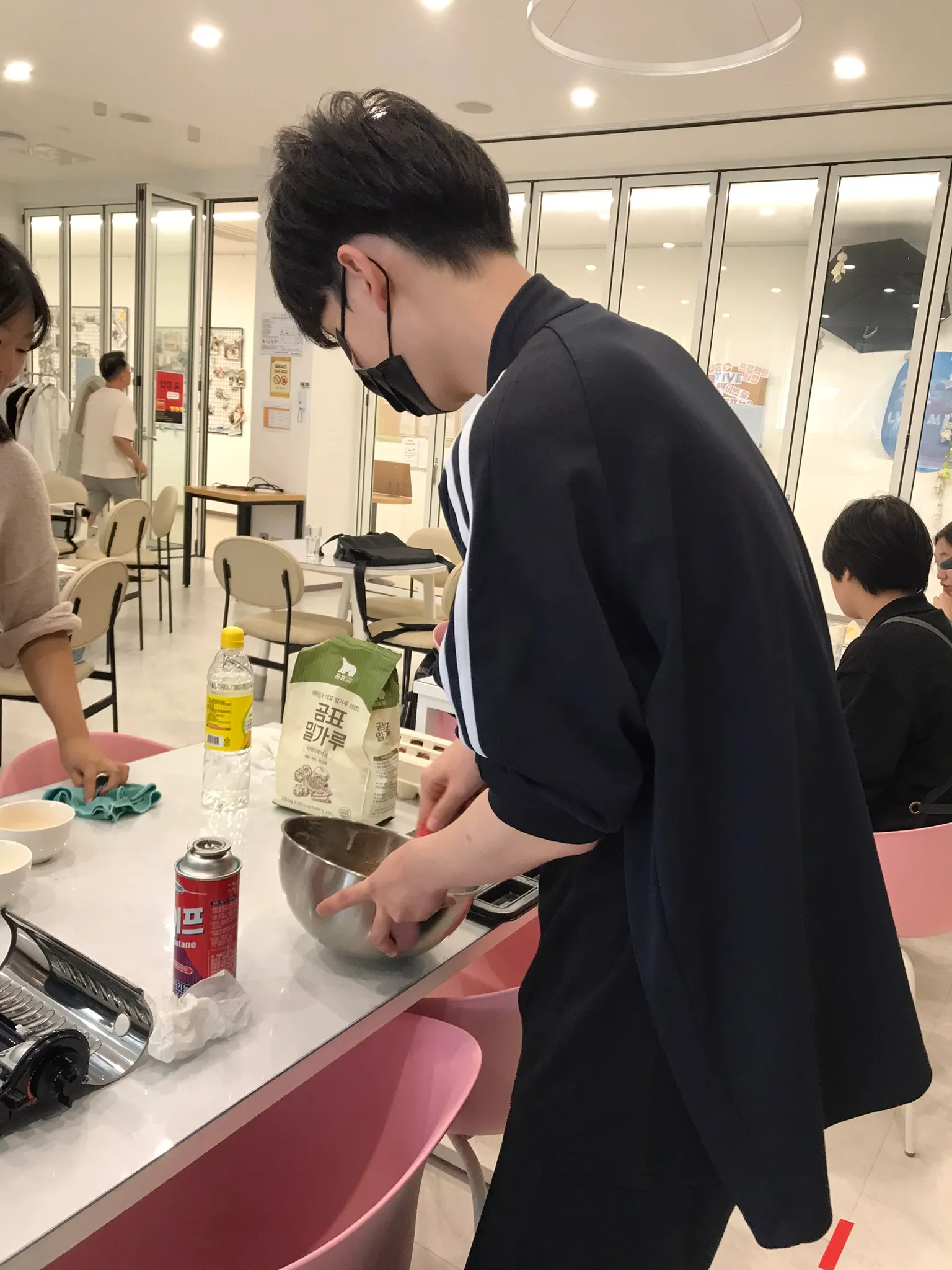 등안은 버터를 녹였고, 빈대떡과 나는 흰자와 노른자를 분리했다. 그러다가 목공팀이 불러서 떠났다.