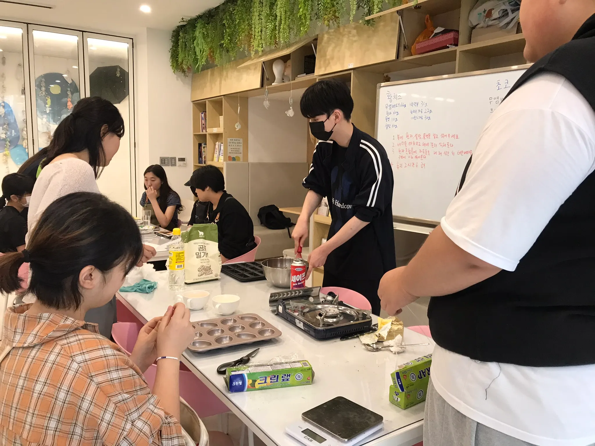 레시피를 칠판에 쓰고 그에 맞는 재료를 준비했다. 전에는 내가 다 재료를 찾아왔다면, 이제 현명하게 같이 하는 방법을 안다. 단톡방에 올린 레시파와 재료를 보고 다같이 칠판에 쓰고, 다같이 재료를 찾아온다. 아직 필요한 도구 같은 것은 잘 준비하지 못하긴 하지만, 이 정도면 장족의 발전이다!