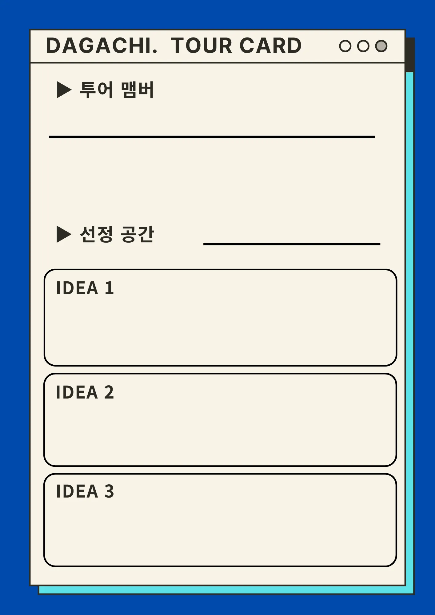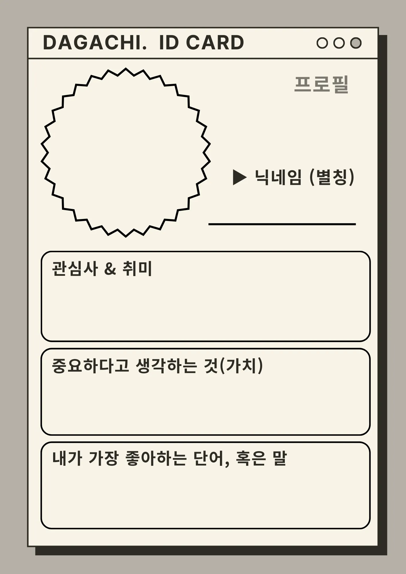 → 코디네이터도 작성, 기획워크숍 3주 내내 사용할 것이기에 활동 끝날 때 꾸리들 것 챙겨 모으기(참여 독려), 목 끈 색 고르기, 목에 걸기