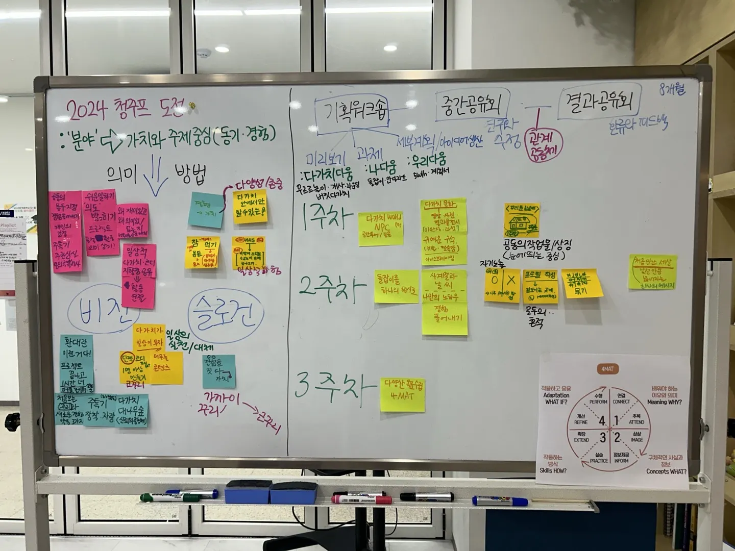3주차_세부계획/아이디어 생산(우리다움) - 다양한 목표 수립 (기간별 사업계획서가 아닌 목표 중심의 계획, 배워야하는 이유와 정보, 작동하는 방식과 응용을 유기적으로 생각할 수 있는 툴 활용 ex. 4MAT)