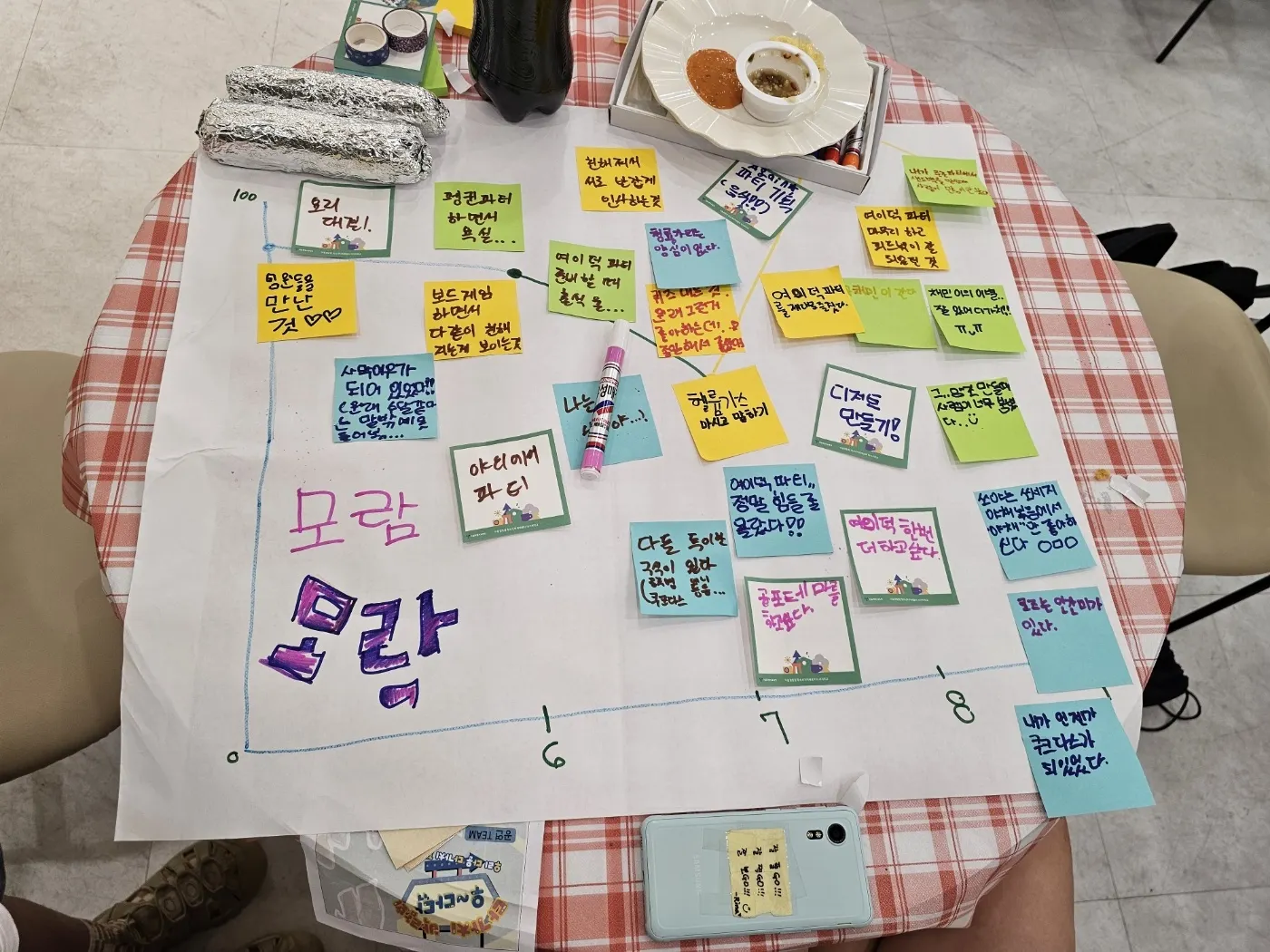 결과공유회 날에도 서로 타임을 정해 시간약속 잘 지키며 부스를 열심히 즐기기도, 운영하기도 하며 매사 최선인 모습을 보여준 꾸리들.. 너무나 대견했고 행복했고 나도 즐거웠던 하루였습니다. 솔직한 이야기들을 나누며 맛있는 것도 나누어 먹고 생각보다 좋았던 그래프 모양에 더더욱 행복해하며 모람모람으로써의 프로젝트를 마무리했습니다.