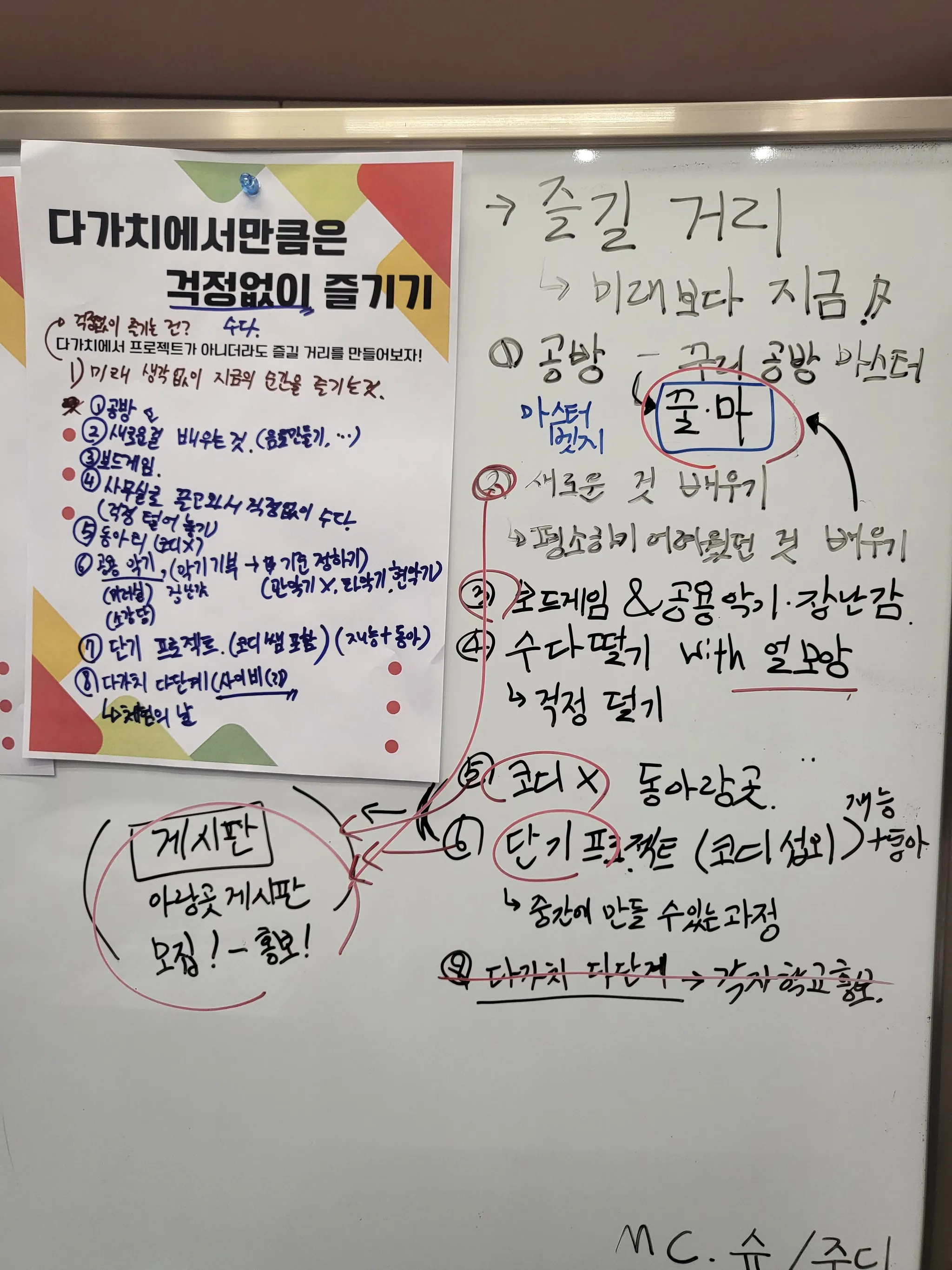 5:00~5:10 | 다가치 다같이 하자 | 다가치 다같이 하자 내용 공유 및 조 편성 (3~4인 1조) |