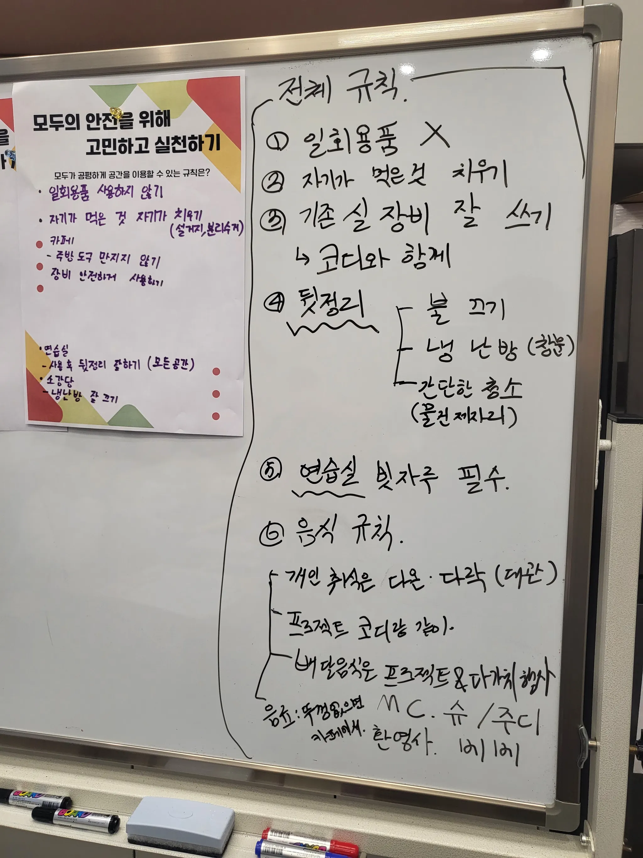 음식 (개인 취식은 다온과 다락, 프로젝트는 코디와 함께 배달음식 가능, 음료는 뚜껑없을 때 카페에서)