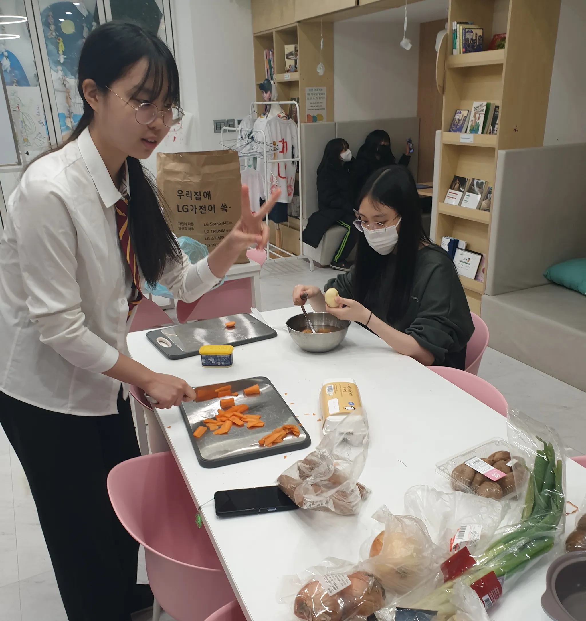 직접 요리를 해보기 전, 영양소란 무엇인가에 대해 고민하고 생각을 나누는 시간을 가졌습니다. 더불어 각 재료와 요리의 성분을 찾아보고 각자 식단표도 만들어보았는데요, ‘요리란 무엇인가?’에 대한 탐구를 기반으로 요리를 시작했습니다!