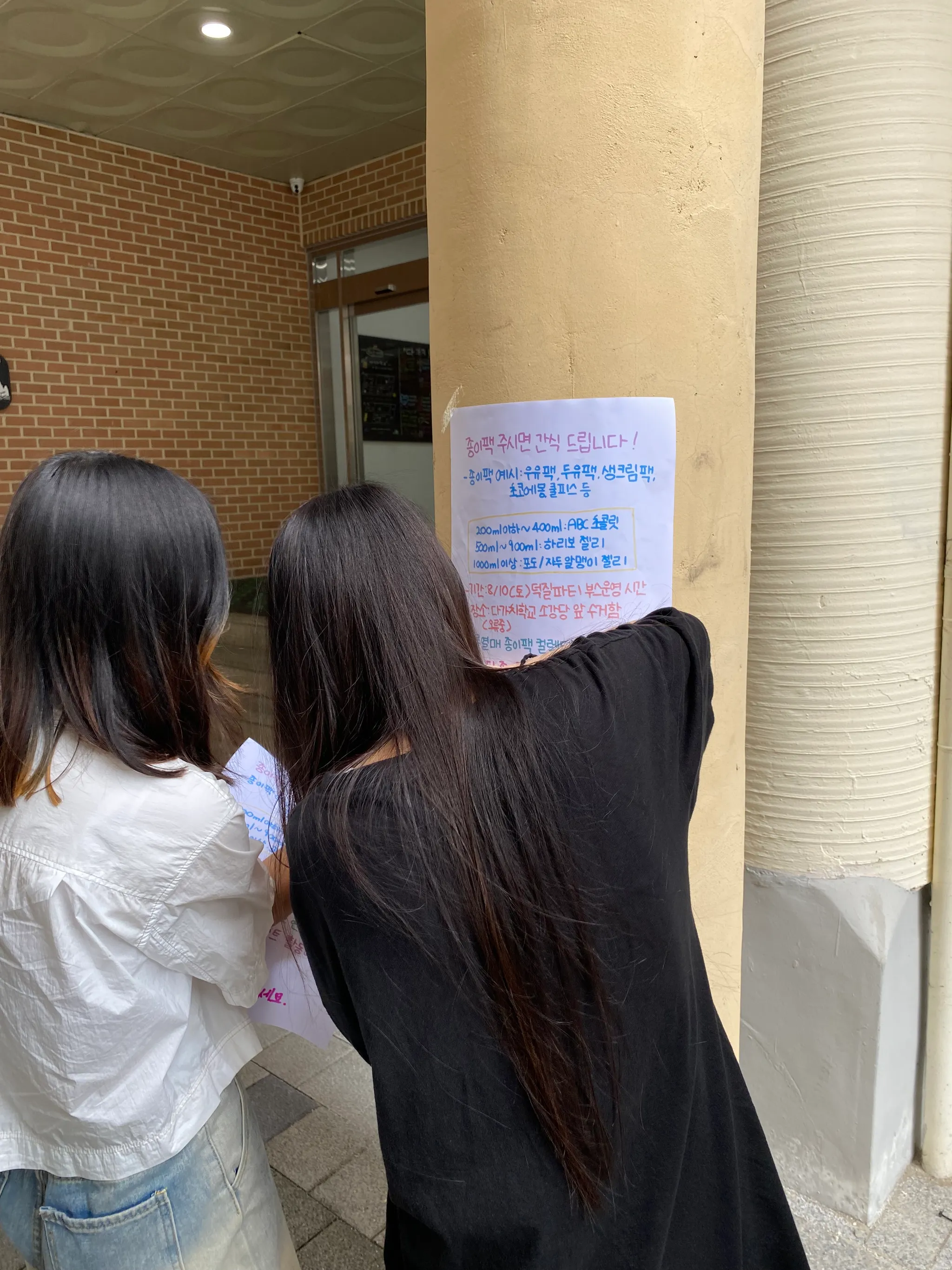 종이팩 수거 포스터 만들고 다가치학교 근방에 붙이기